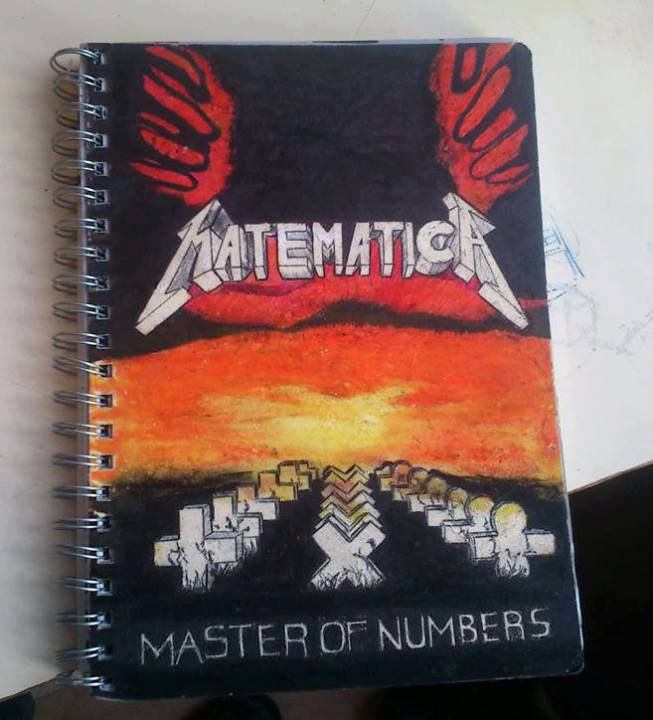 Il y a bien longtemps de ça, je suis tombé sur la photo ci-dessous : celle d’un cahier de maths customisé, avec pour base la pochette de l’album « Master of puppets » de Metallica.